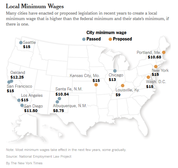 The trend towards local (city and county) based minimum based wages has been growing.